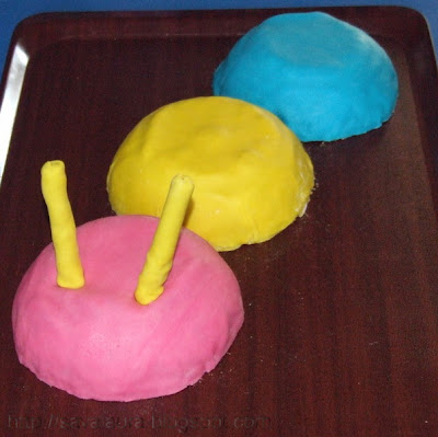 …si daca vrei sa termini si mai rapid treaba (sau nu gasesti martipan) iti sugerez sa-l inlocuiesti cu frisca colorata in diferite culori.