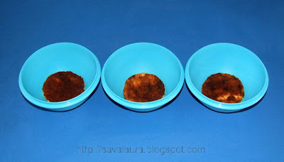 Inainte de a asambla fiecare „burtica” :), tapetati fiecare bol cu folie de bucatarie transparenta (in felul asta le veti putea scoate foarte usor din forme)