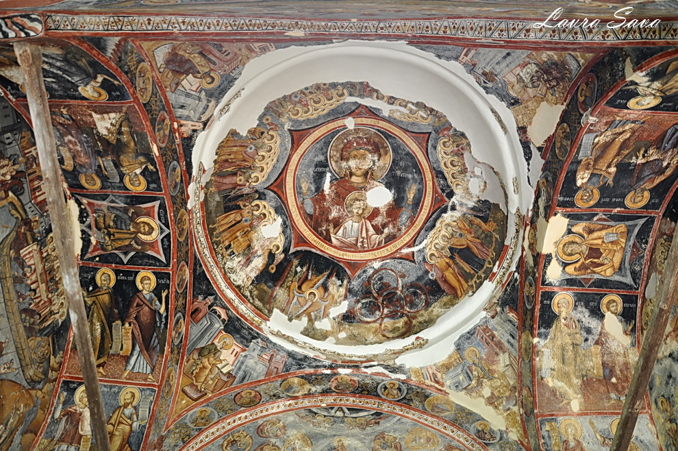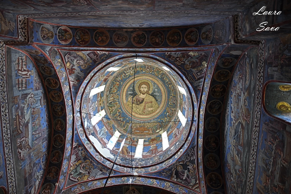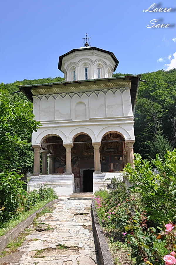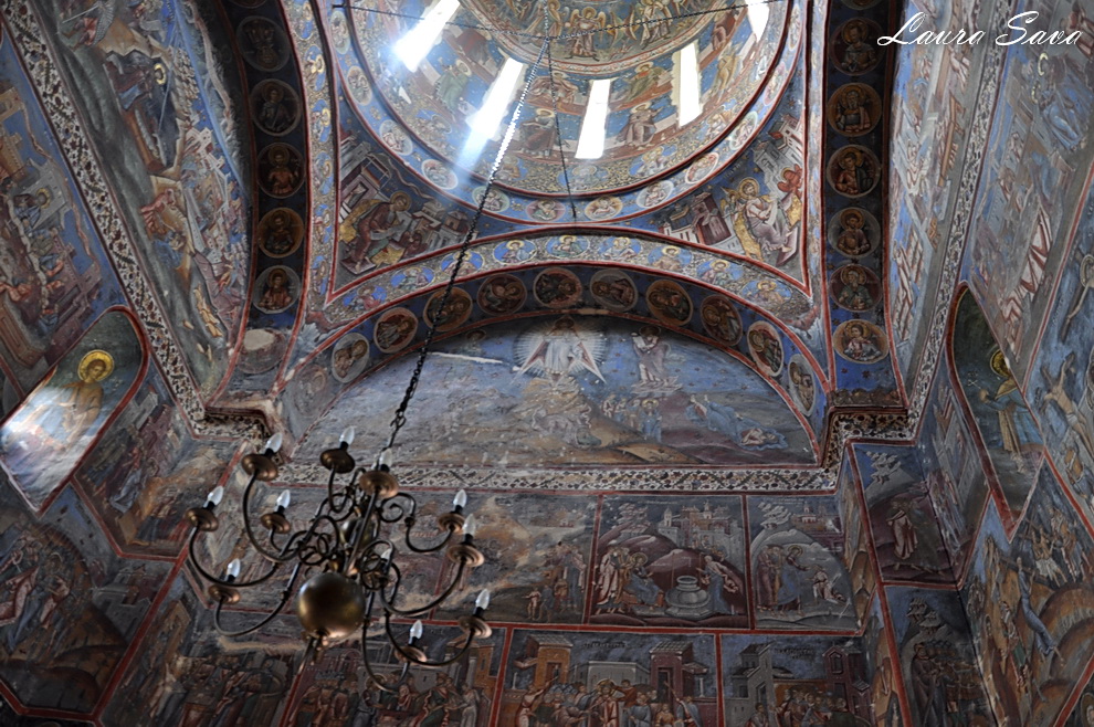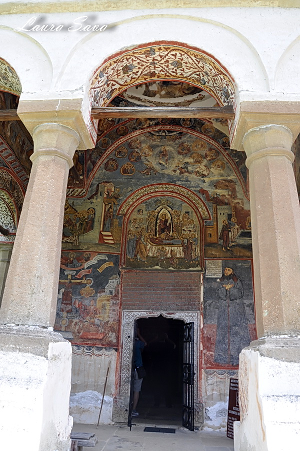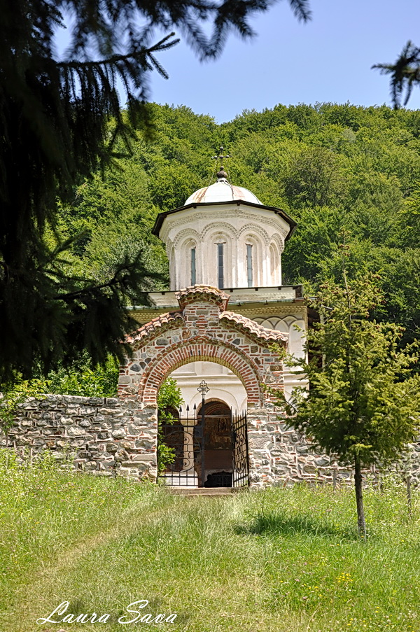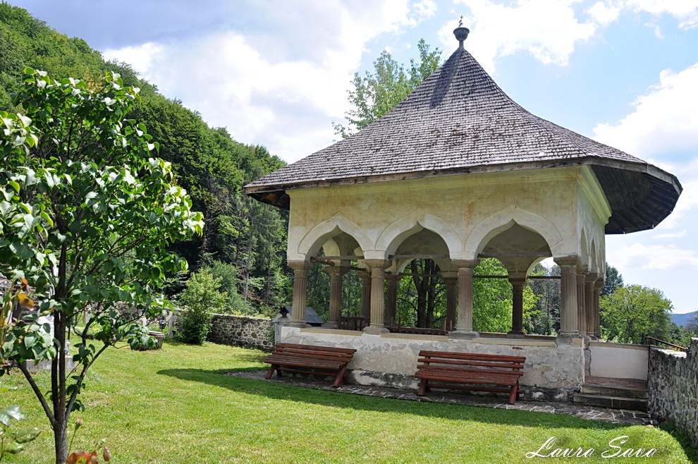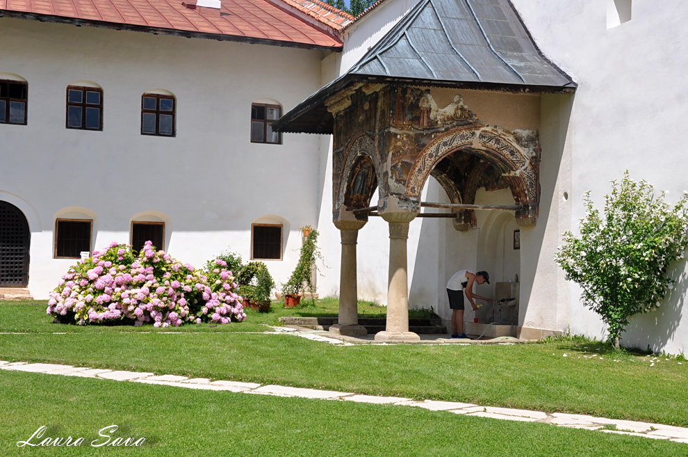 Biserica Bolnita „Adormirea Maicii Domnului” se afla la doar o suta de metri de Manastirea Hurezi, langa o pajiste plina de verdeata…si de profunda liniste. Nu era nimeni acolo, doar noi 🙂 Noi si brazii inalti ce strajuiesc cararea catre micuta biserica ctitorita de sotia domnitorului, Doamna Maria. Si-un lac, frumos tare, cu o fantana: