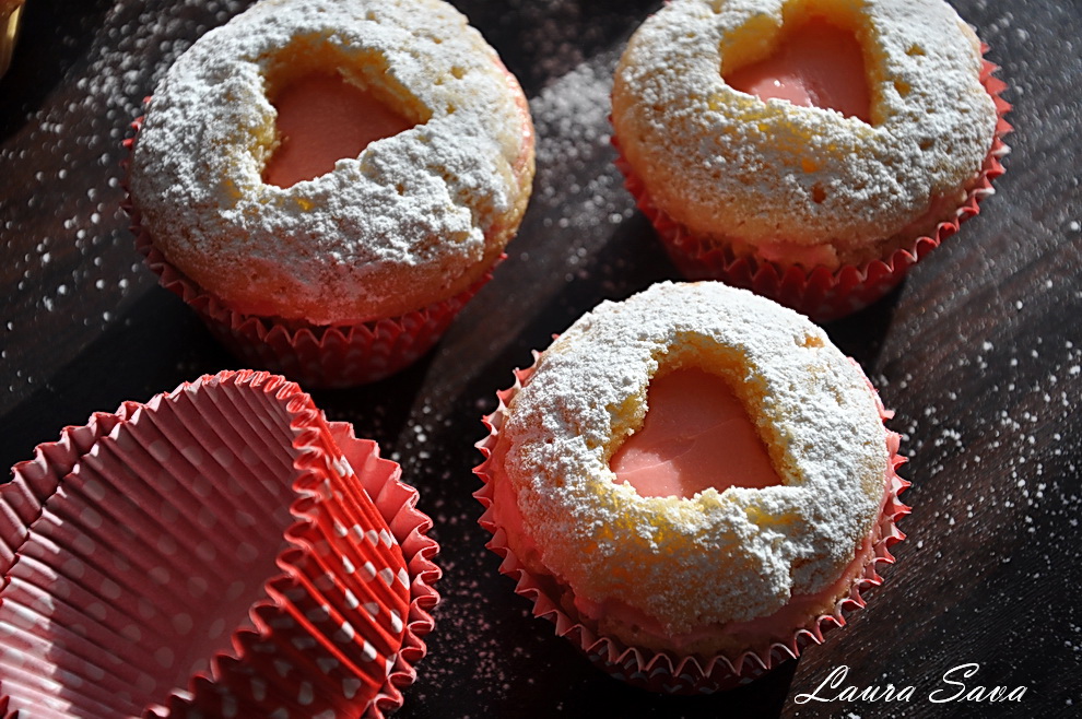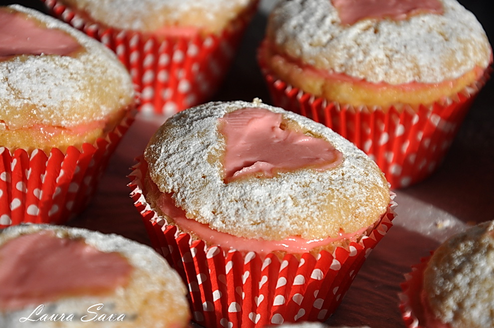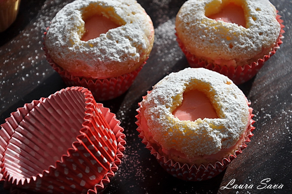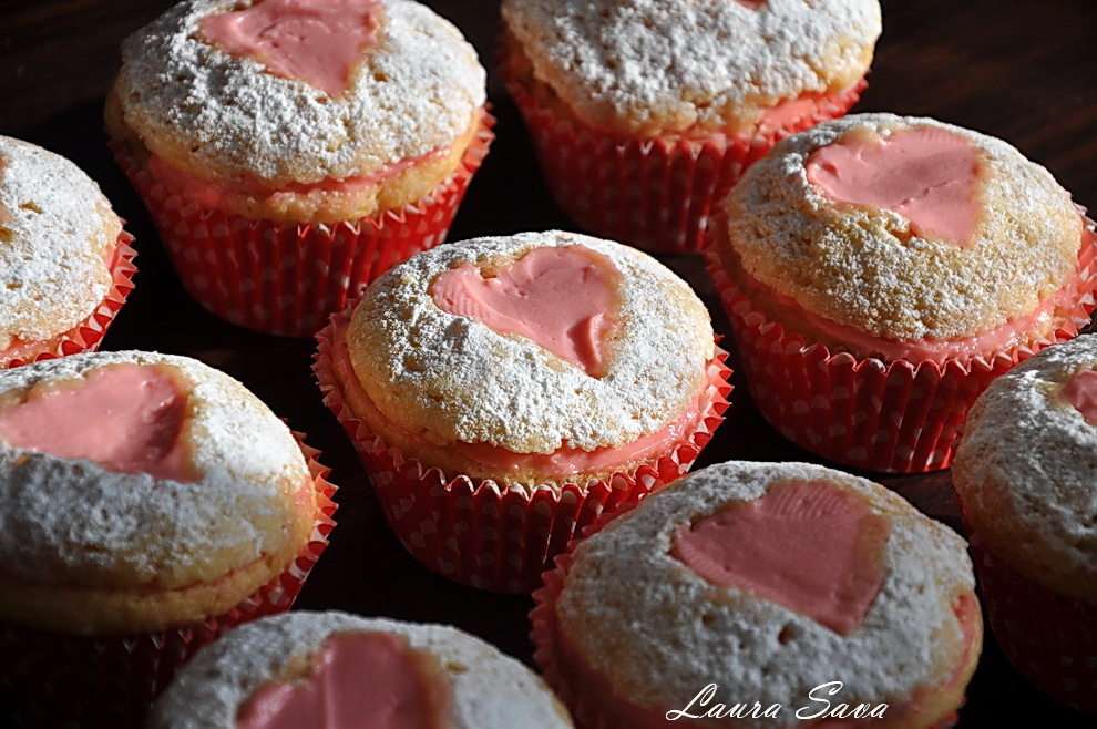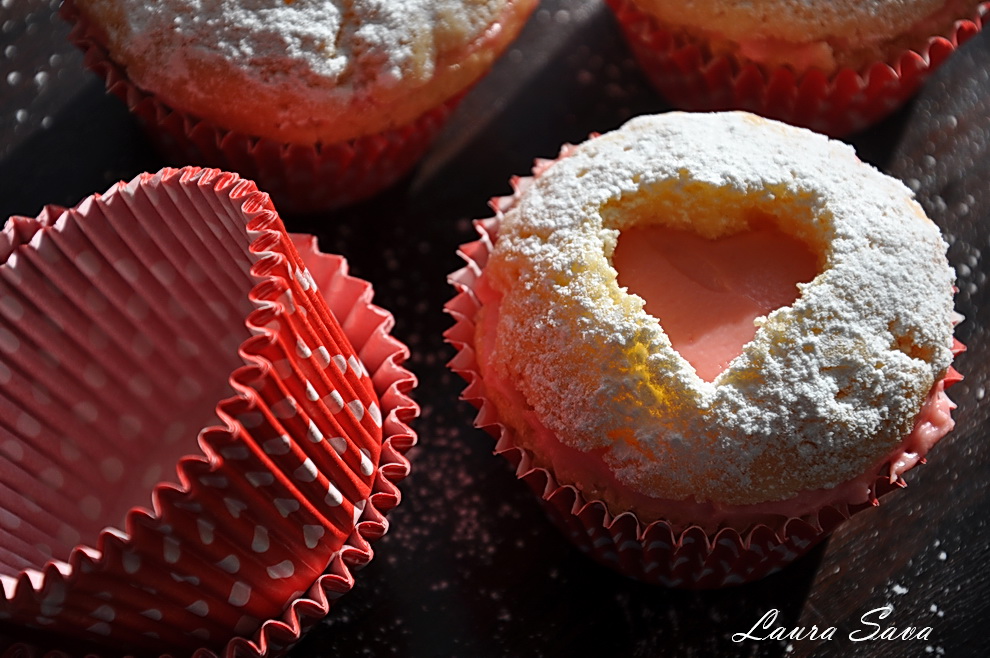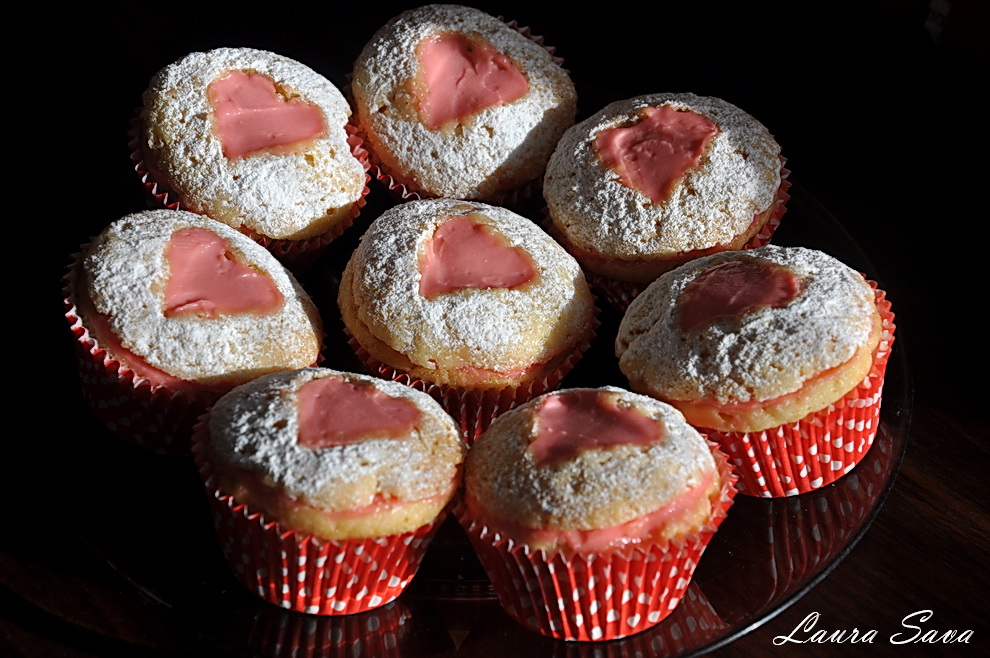 Iar aici e versiunea „briose inimioara umplute”, ce mi s-a parut la fel de apetisanta. Am umplut „inimioarele”, dupa cum bine v-ati dat seama :))