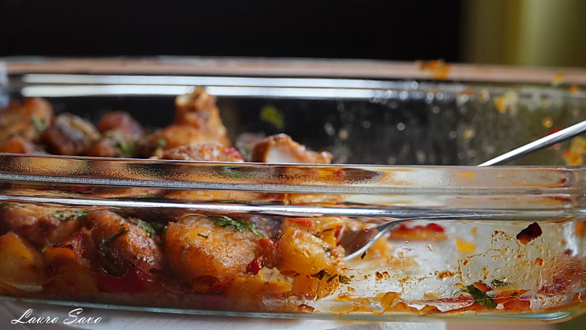 Incingeti, asadar, cuptorul la 220 grade C (foc mare) si ungeti o forma mica, de aprox. 25cm x 22cm cu putin ulei.