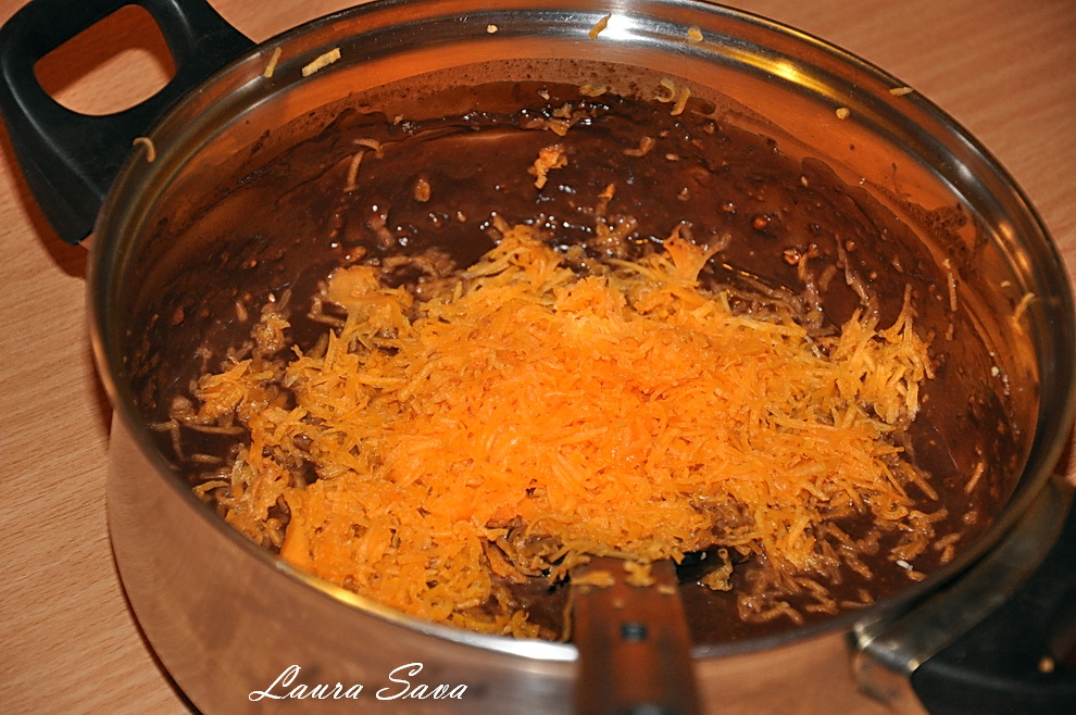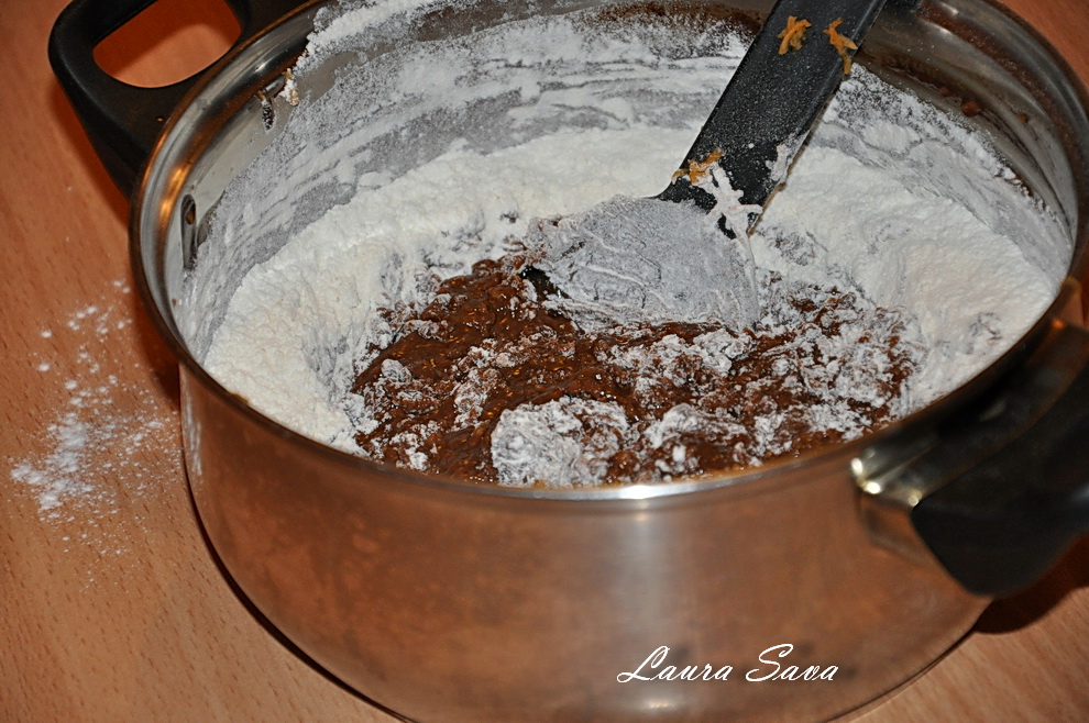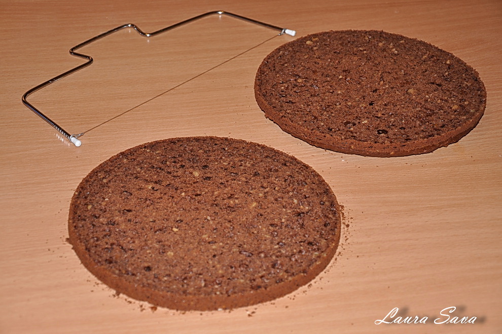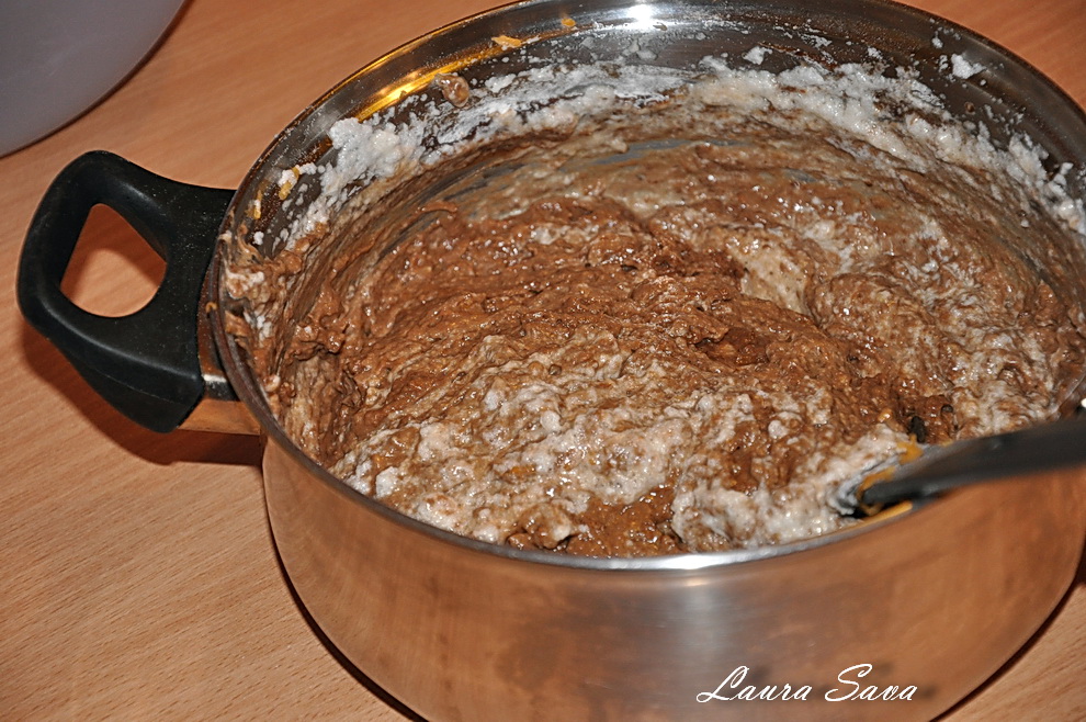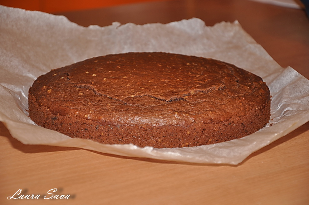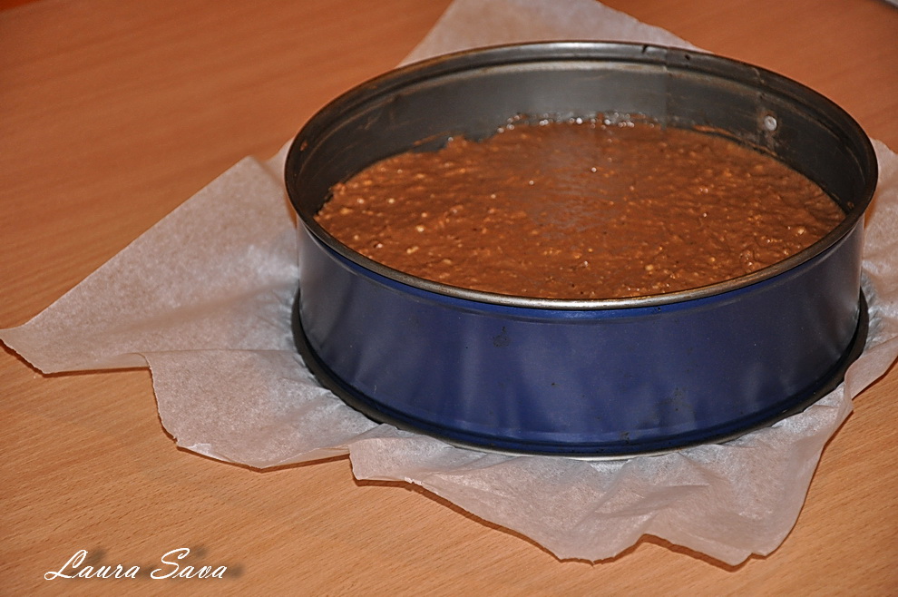Turnati compozitia rezultata in forma, nivelati usor si dati la cuptor pentru cca. 28-30 de minute.