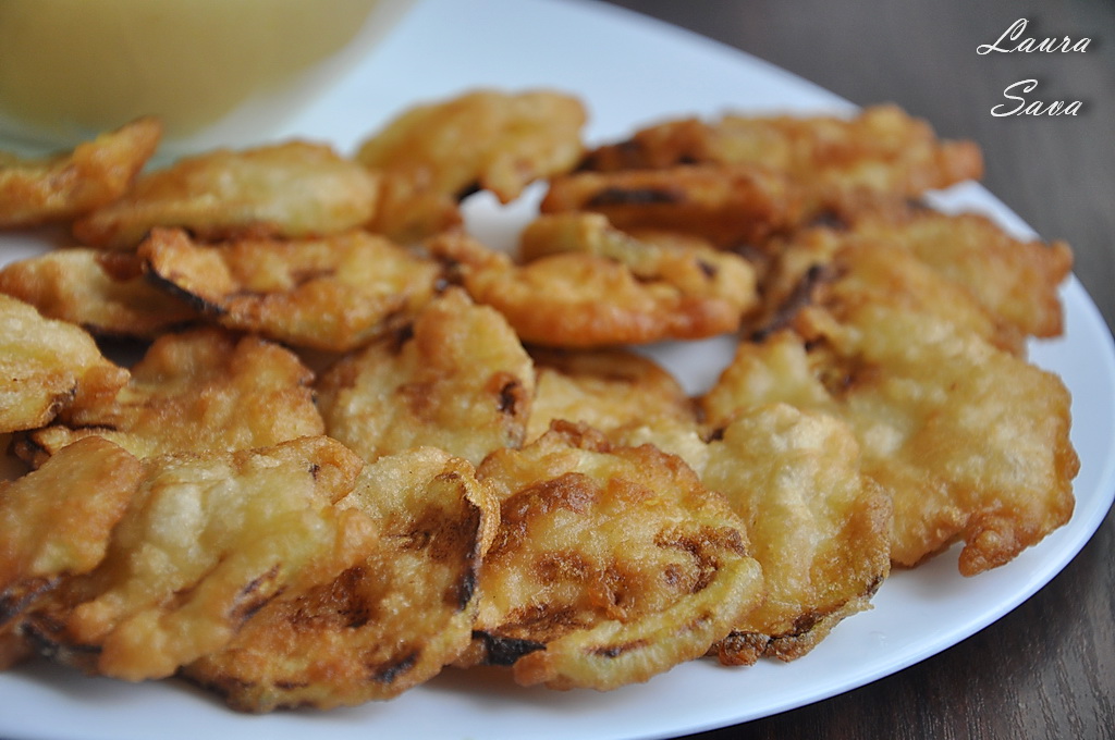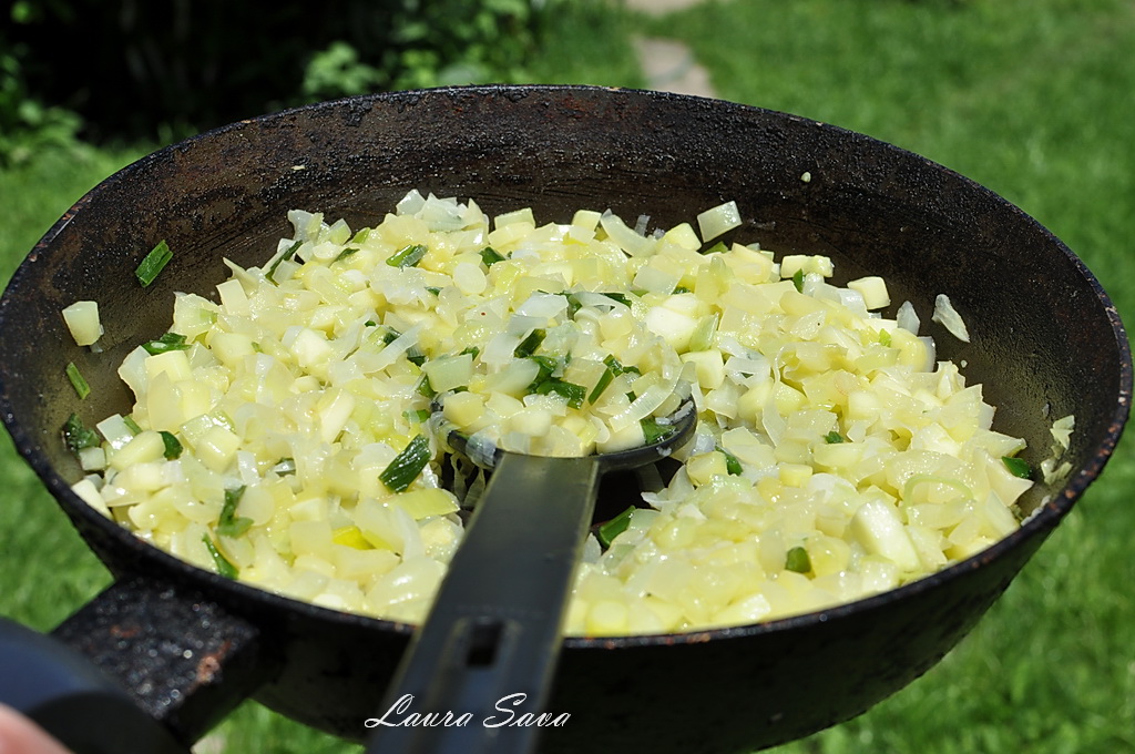 In continuare, puneti putin ulei intr-o tigaie si prajiti feliile de vinete, rand pe rand. Adaugati din cand in cand ulei in tigaie, pentru ca vinetele absorb foarte repede uleiul. Nu le inghesuiti si intoarceti-le de mai multe ori, daca e cazul. Procedati la fel cu dovleceii. Eu nu le pun pe servetele de hartie, ca sa absoarba din „excesul” de ulei…pentru ca, de fapt, acolo e toata aroma!!! Sunt atat de gustoase feliile de vinete prajite sau dovleceii prajiti, asa simpli, incat cu greu m-am abtinut sa nu tot gust :)))