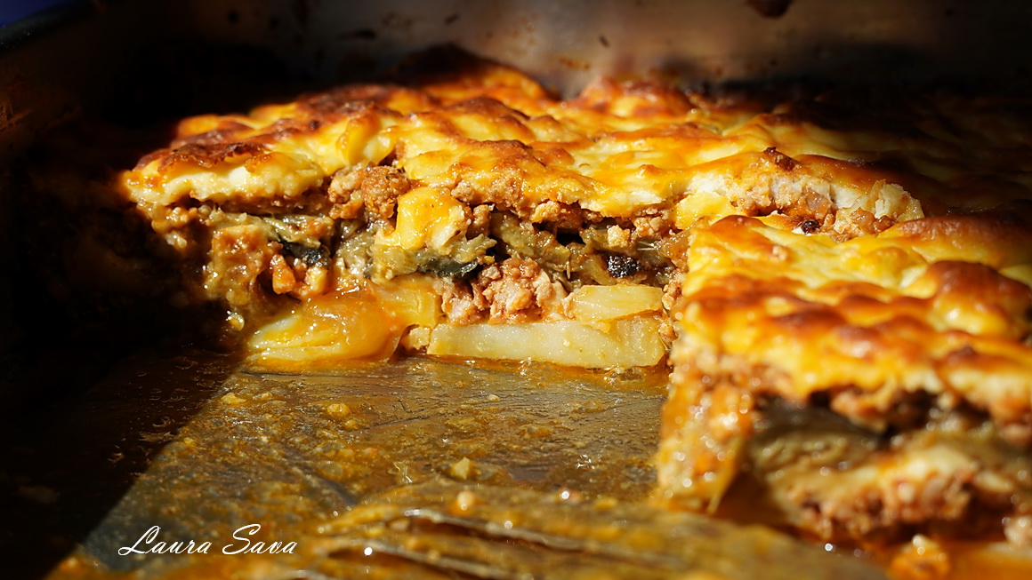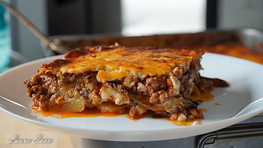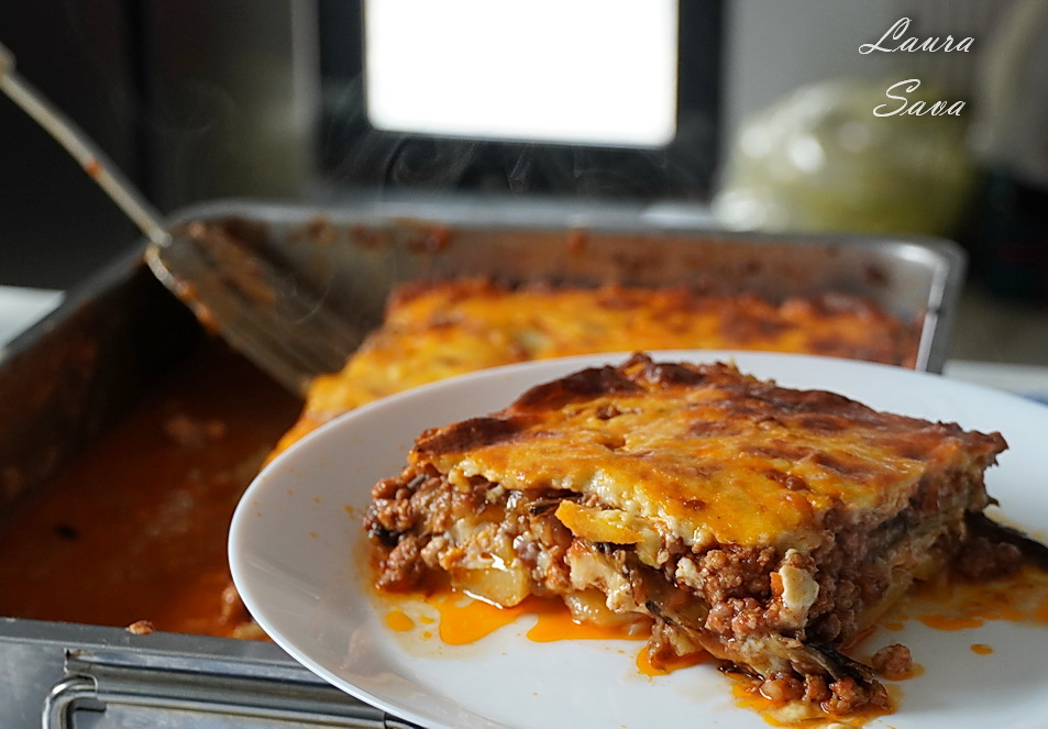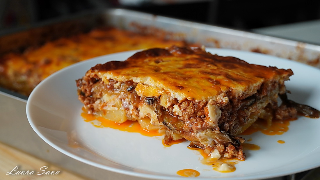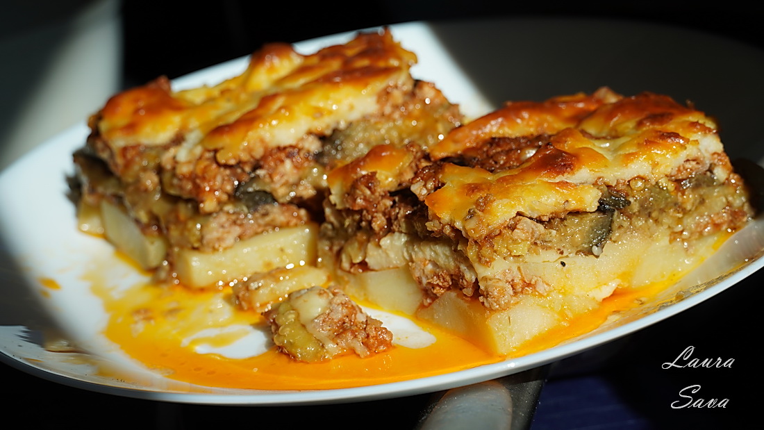 Adevarul este ca reteta originala nu continea nici cartofi si nici besamel. Bucatarul grec Nikolaos Tselementes, prin anul 1920, inspirat de bucataria frantuzeasca, a adaugat sosul Bechamel. Si cartofii, cred… Si a reinventat, cu mare curaj, zic eu, aceasta reteta care a ajuns celebra in toata lumea.