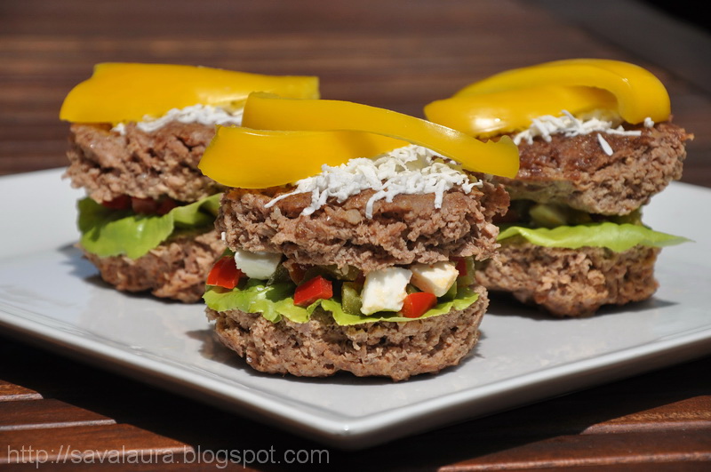 Si iata, o a doua reteta, mai saraca in calorii decat cele pe care vi pe prezint de obicei, isi face timid aparitia :). E vorba despre niste simpatici hamburgeri din carne tocata, colorati si apetisanti, pe care sper sa-i savurati cu placere.