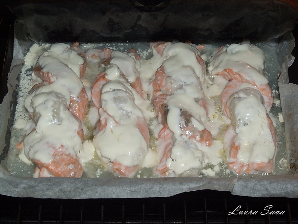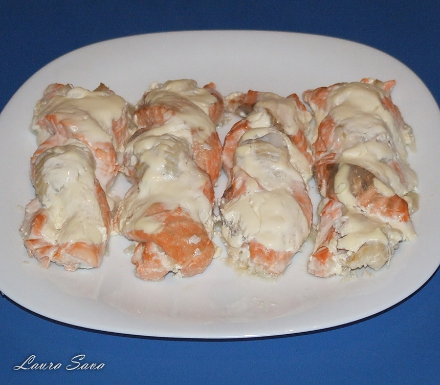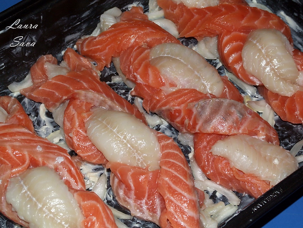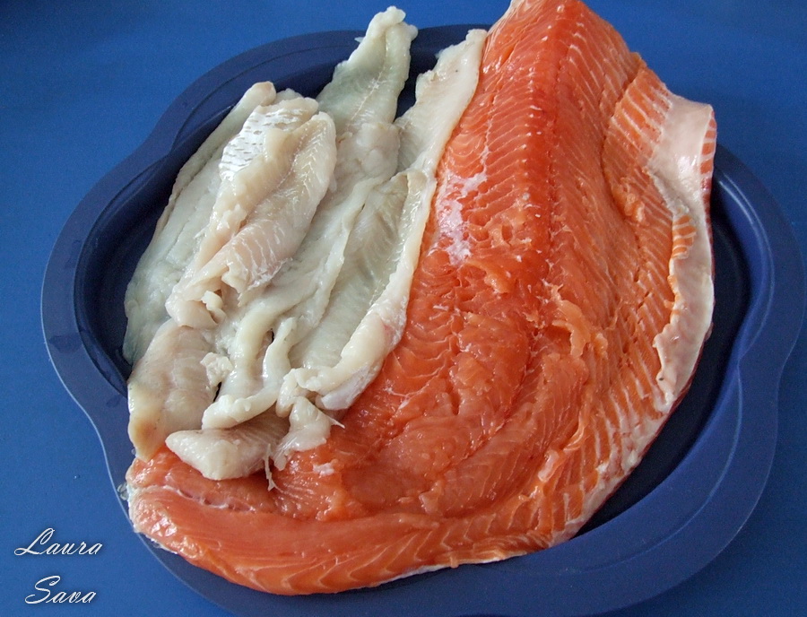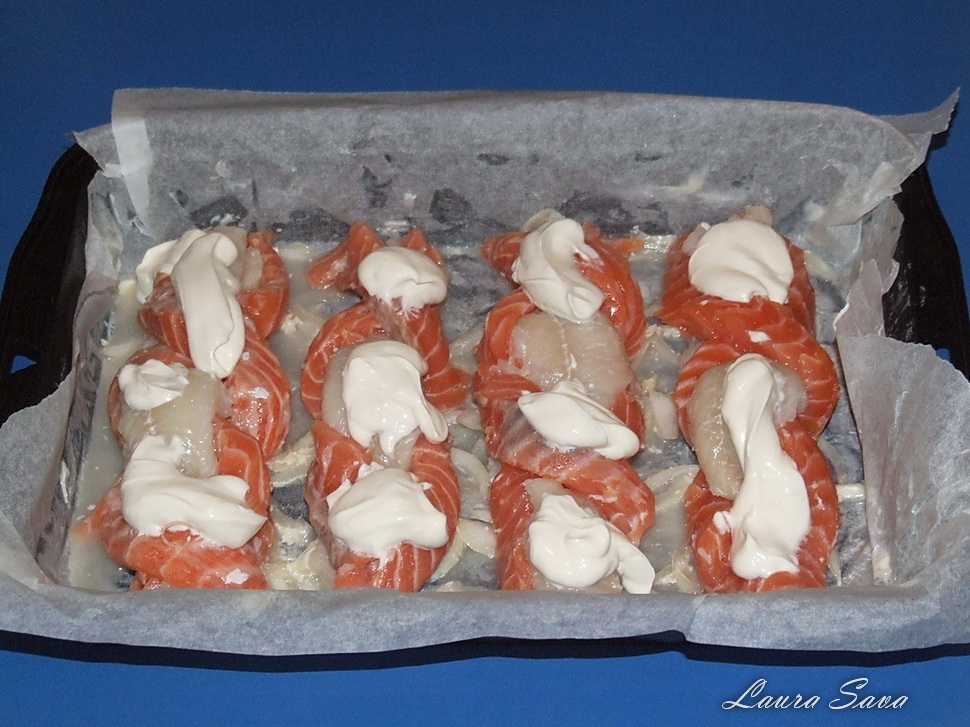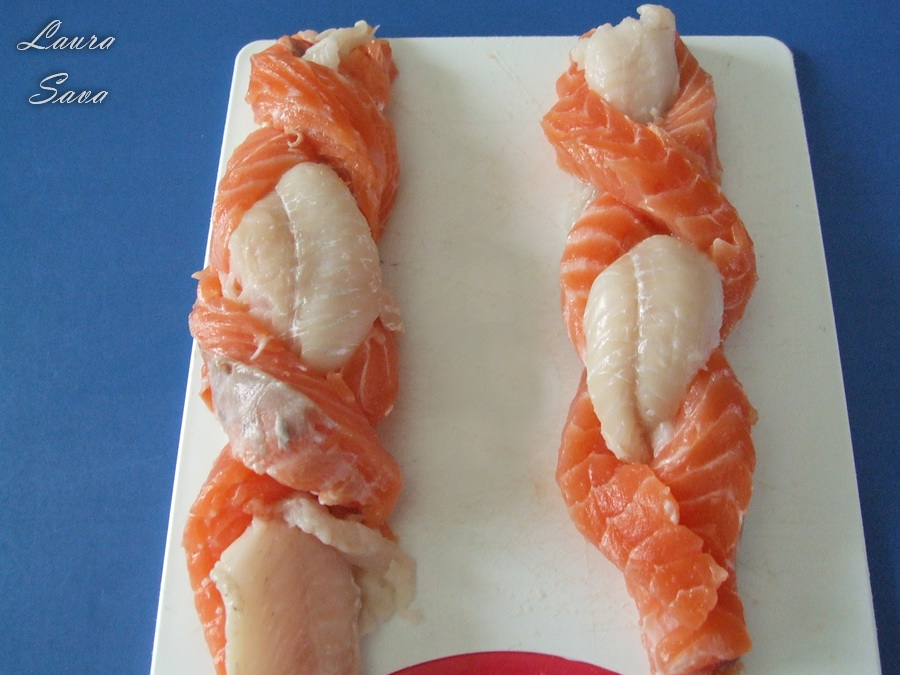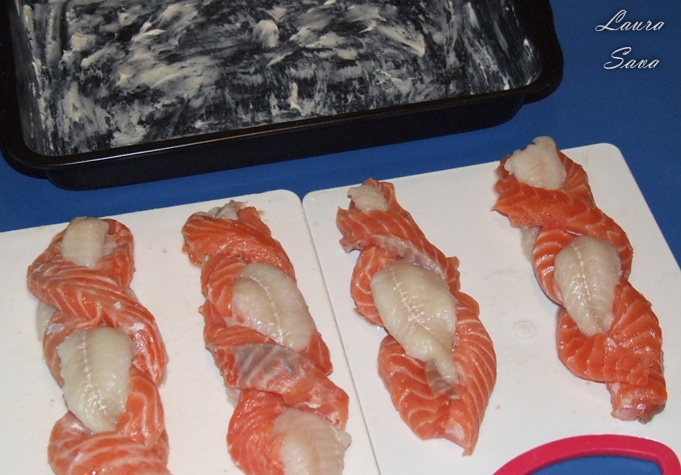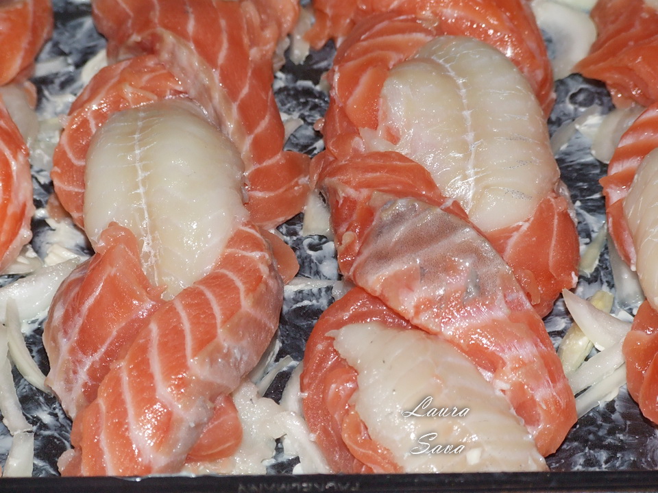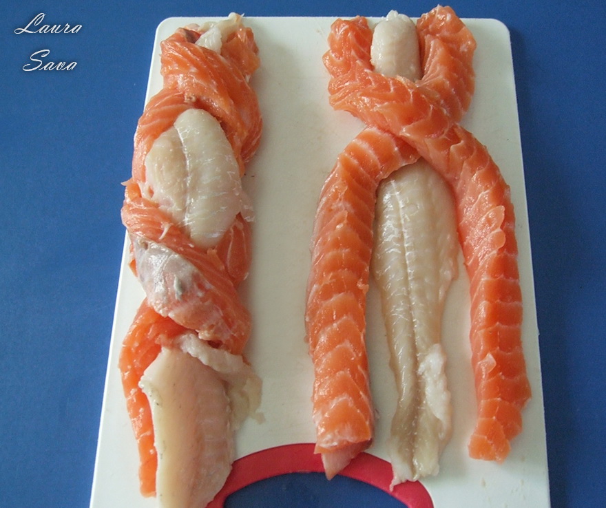 Puteti folosi si alte fasii de peste, tot ce conteaza e sa obtineti un contrast apetisant 😛