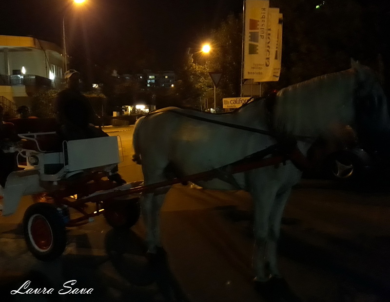 Iar intr-o alta seara ne-am intors la hotel cu caleasca trasa de cai…un singur cal era, de fapt, si il chema Sorin 😀 Foarte frumos. Si calul, si plimbarea!!!