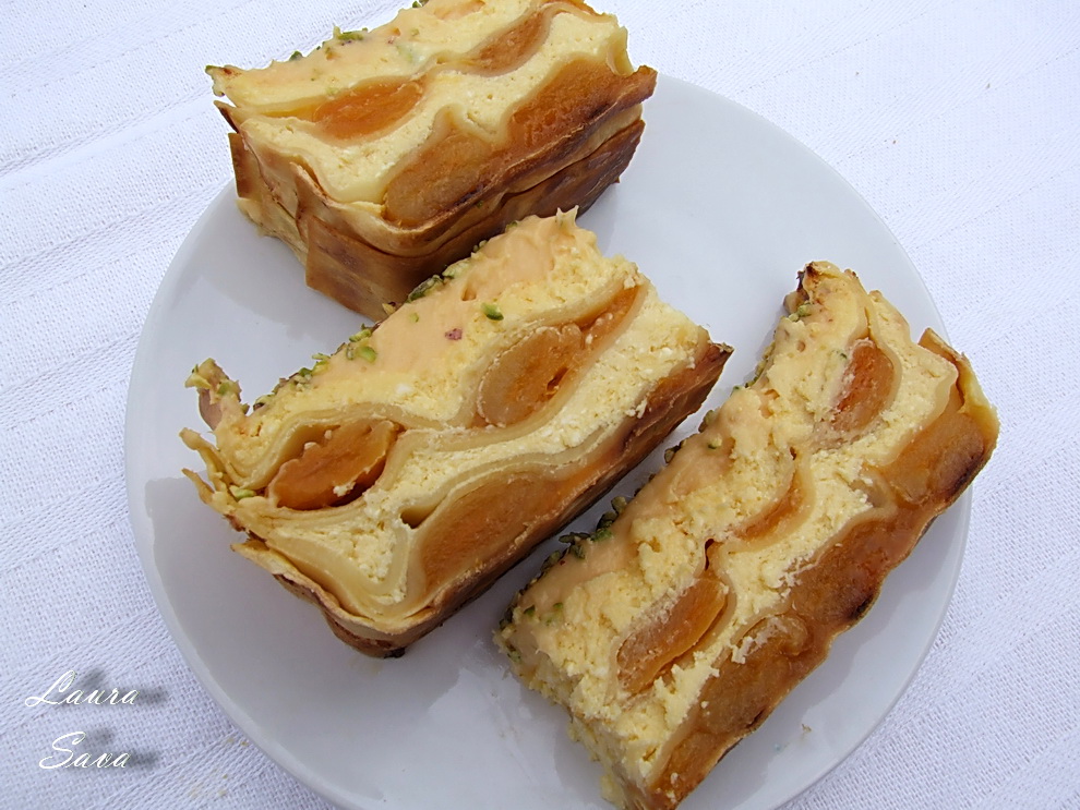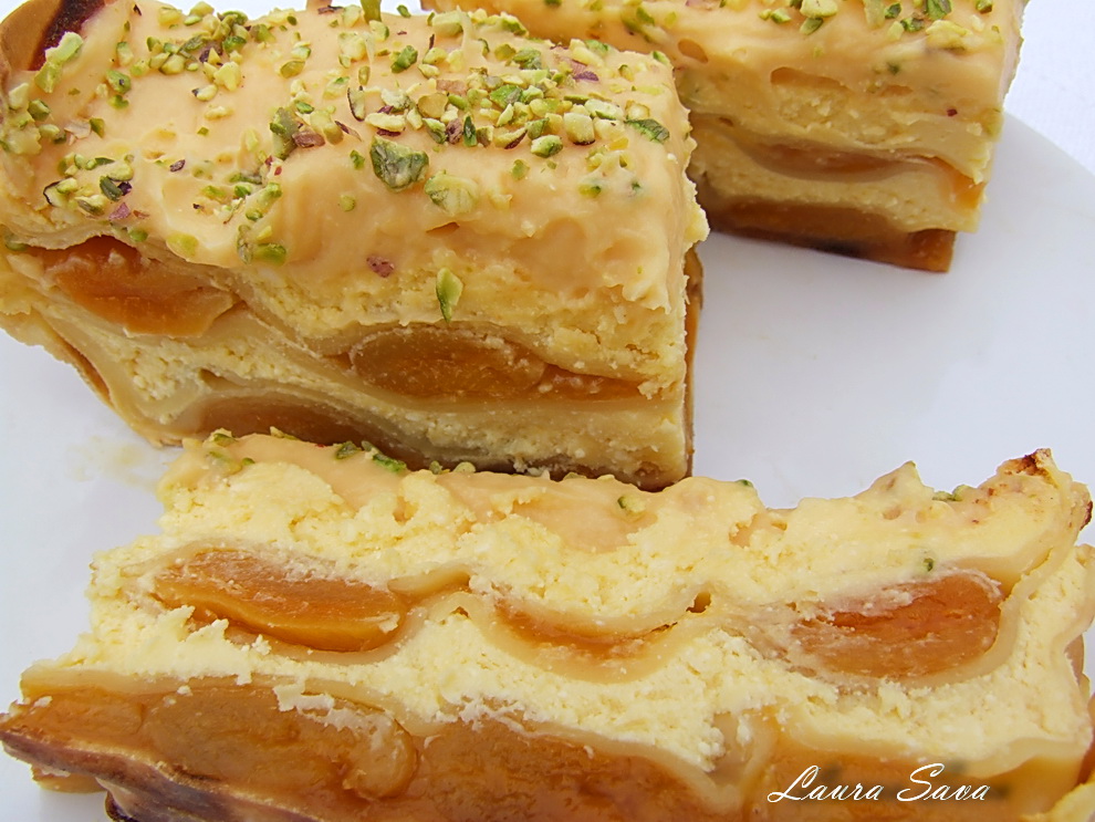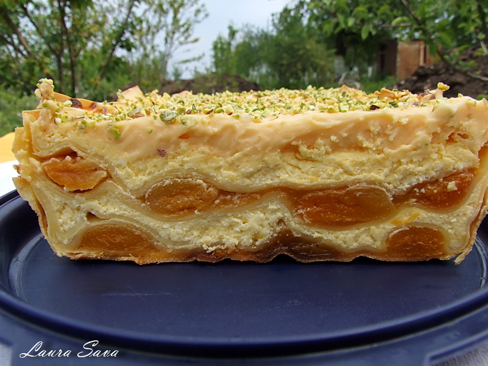 Pentru noi, care suntem niste impatimiti ai ciocolatei, aceasta lasagna cu caise, mascarpone si fistic a fost o adevarata surpriza!!! … adica ne-a placut mult! 😀