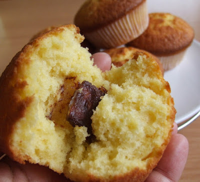 - 12-15 bomboane de ciocolata sau patratele de ciocolata de care vreti (cate muffins ies)