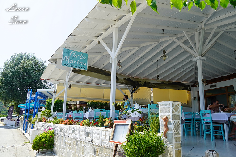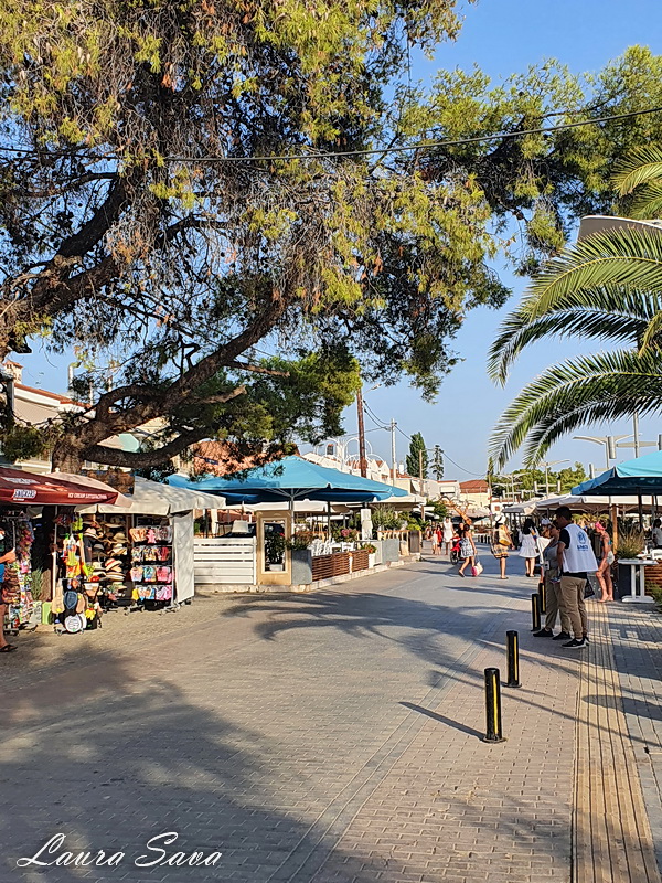 Faleza portului, cu tavernele specifice, cu terase mari si vedere la mare: