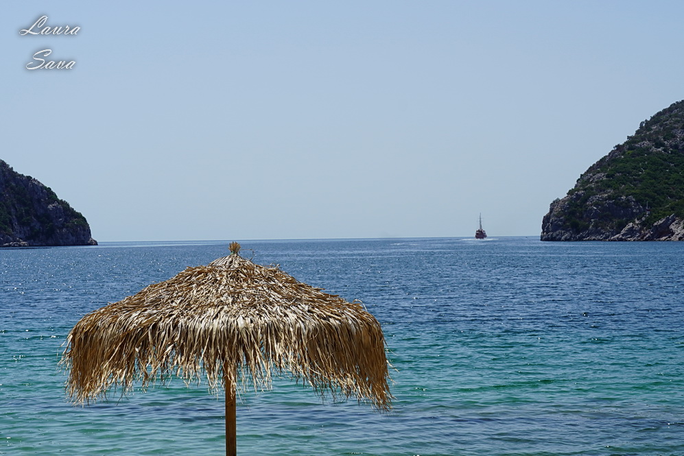 Iar noi ne-am asezat sub umbrelele astea ca focul, de unde puteam cuprinde cu ochii tot golful!!!