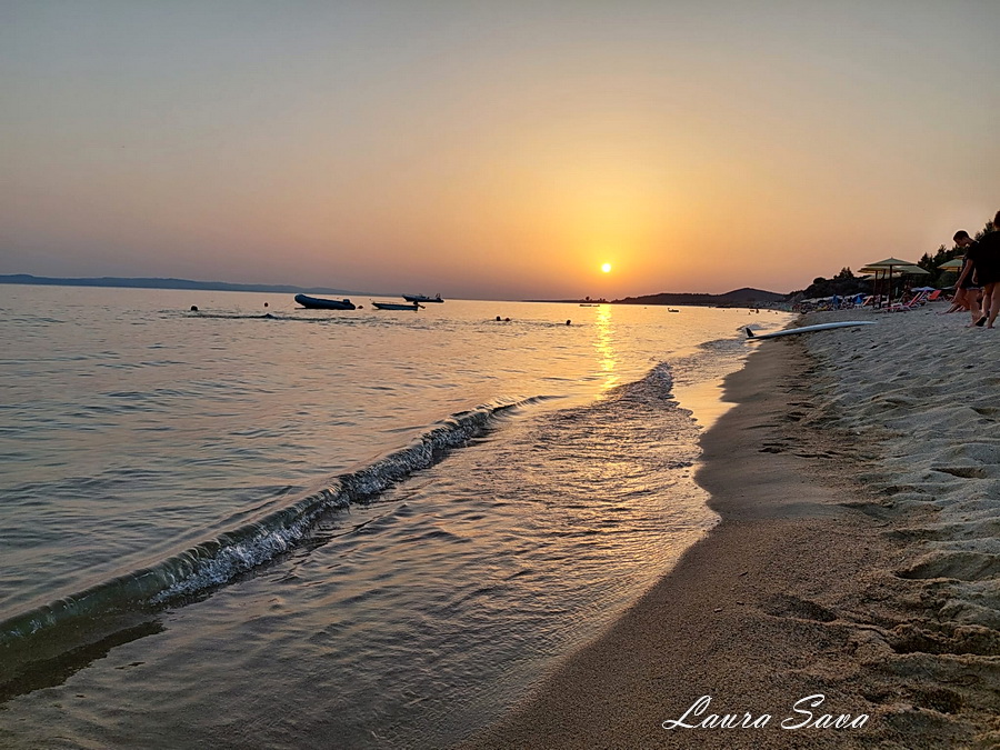 Si un apus splendid de soare, pe malul marii, de unde ne-am luat la revedere de la Grecia!