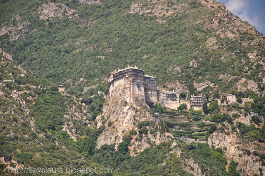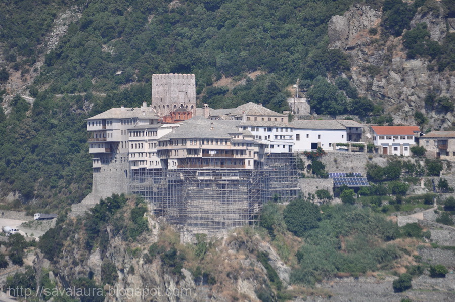 …si prima manastire pe care am zarit-o: Thevais, care este un schit rus a carui constructie a inceput in sec. 20 si a luat sfarsit odata cu primele manifestari ale revolutiei din Rusia. Schitul nu a fost locuit niciodata, deoarece majoritatea calugarilor rusi au parasit Sfantul Munte din cauza revolutiei: