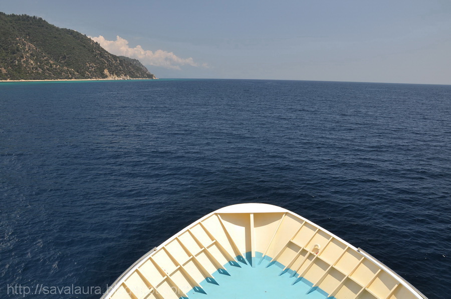 Vaporul piratilor („Menia Maria”) l-am luat dintr-un orasel din peninsula Sithonia, de unde am facut o mica croaziera pina la Athos, cu oprire la Ouranopoli. Superb!