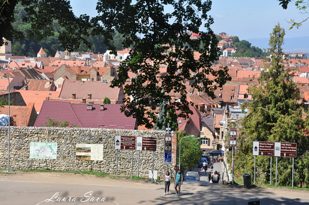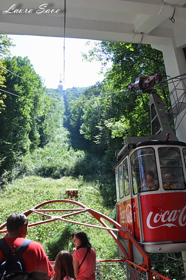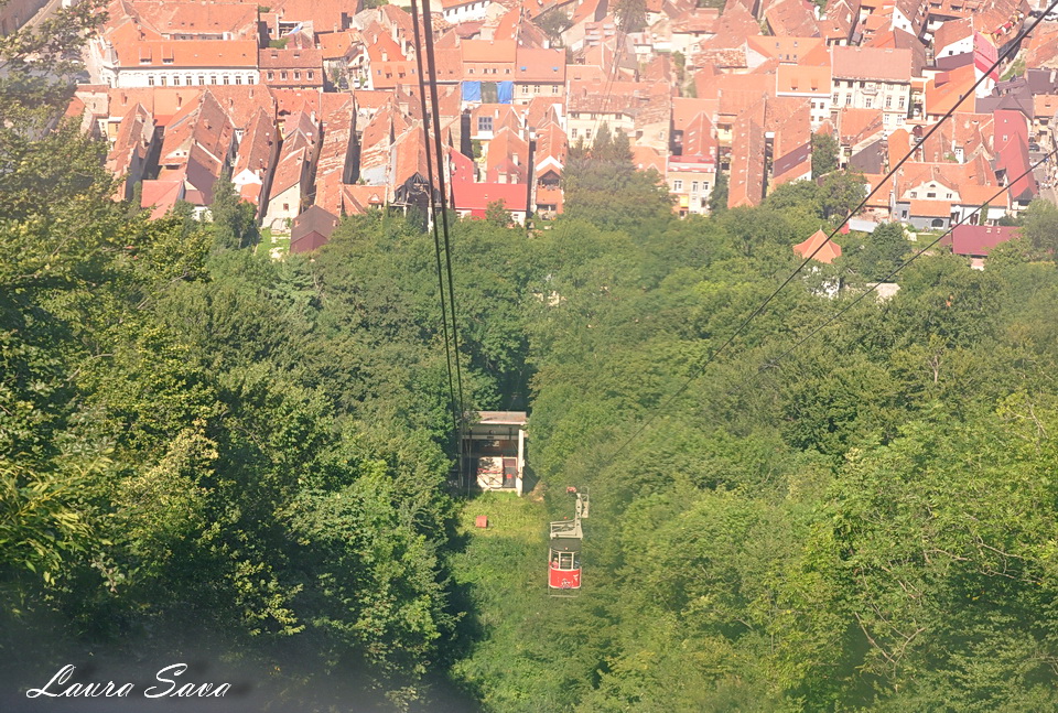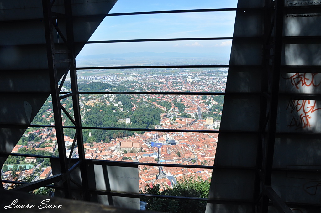 Experienta noastra cu telecabina a fost unica! Am ajuns la Aleea de sub Tampa destul de tarziu, adica pe la pranz, desi eram cazati in apropiere…dar asa ne „miscam” noi cand suntem in concediu :)) Si desi toate zilele petrecute in Brasov au fost extrem de calduroase, cea in care ne-am decis sa admiram panorama Brasovului a fost si mai si… un motiv in plus pentru claustrofobia mea (nejustificata?!). Treptele pe care le-am urcat pana la statia telecabinei, cate doua trepte-n 5 minute 😀 (atat de mare era coada!!!!), mi-au parut interminabile! Dar odata ajunsa acolo, m-am bucurat ca un copil :))) Sus, pe Tampa, inca din spatele semnului „Brasov”, pe care il vedeam de fiecare data cand ieseam la plimbare prin Centrul Vechi (ba chiar si din camera), am realizat ca daca nu vezi orasul de la inaltime, parca nu-l vezi deloc…