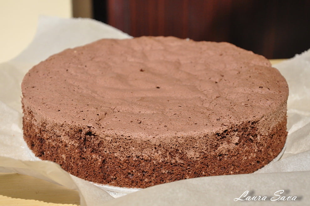 Spiralele de ciocolata sunt doar pentru poza 😛 , in final crema se intinde frumos pe toata suprafata blatului:
