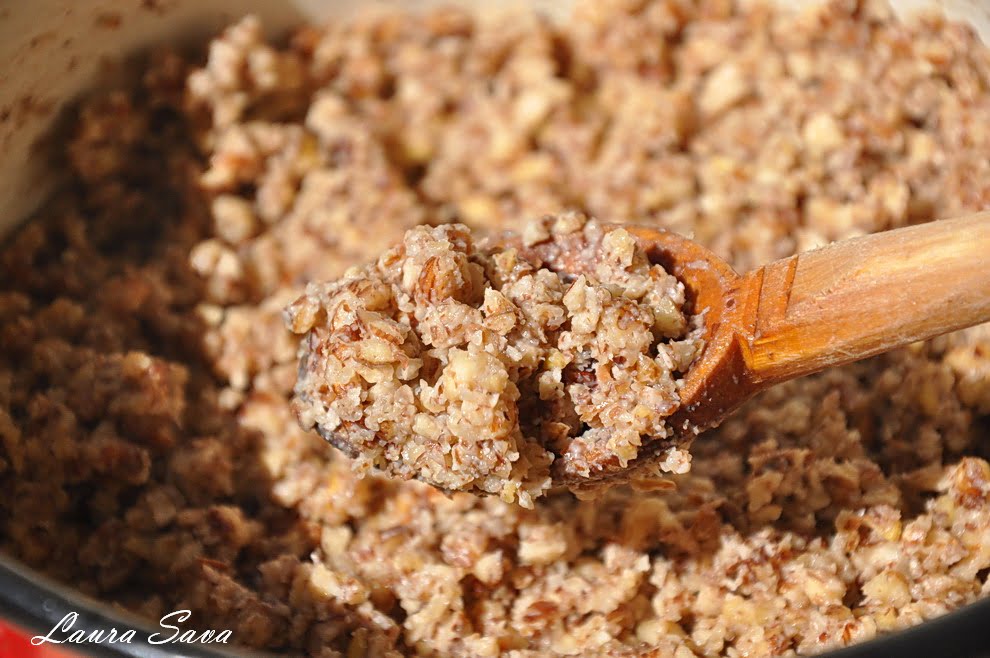 Lasati apoi crema sa se raceasca si amestecati-o cu alunele fierte si reci. Aromatizati cu rom.
