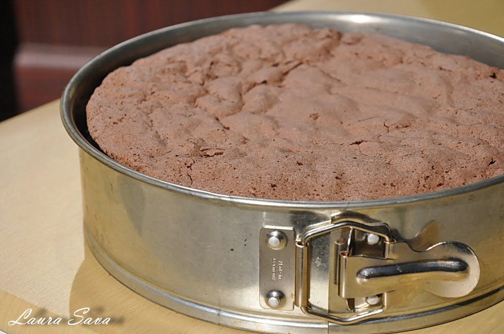 Incalziti cuptorul la 170 grade C (foc mediu). Tapetati cu hartie de copt o forma de tort cu diam. de 24 cm.