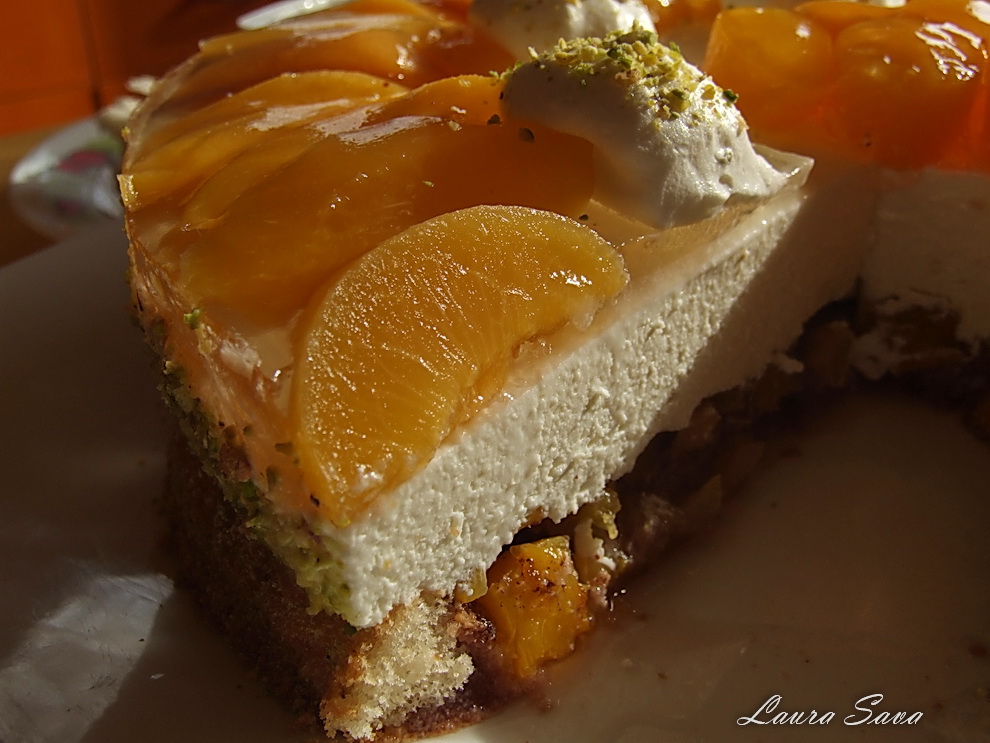 Un tort cu adevatat rafinat si cremos, de vara, un tort pe care il puteti face ori cu nectarine…ori cu piersici 🙂