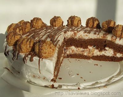Acest tort nu este un simplu tort de ciocolata ci un Tort Ferrero Rocher 😀 , creat special pentru iubitorii minunatelor bomboane de ciocolata Ferrero-Rocher!!!!!