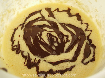 Se topeste ciocolata in bain-marie (eu am pus-o cateva secunde in microunde, ca de obicei. Mi se pare cea mai buna si rapida metoda).
