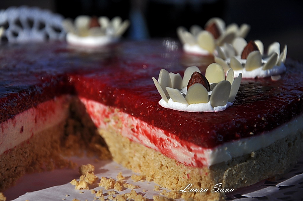 PS: Puteti folosi capsuni in loc de zmeura iar branza mascarpone se poate inlocui cu orice alta crema de branza.