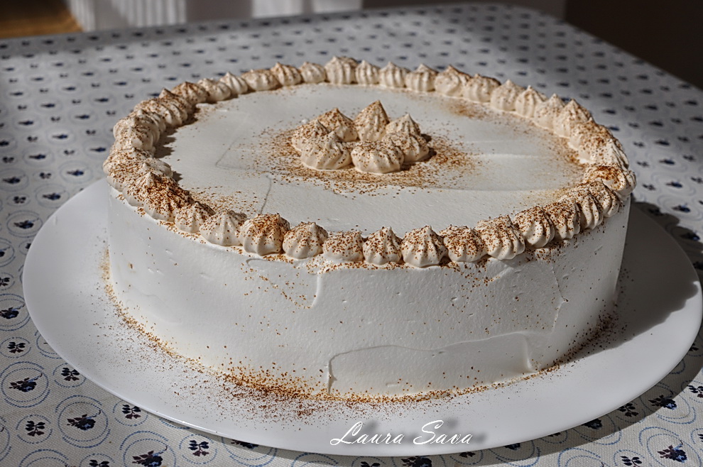 Finalizati tortul cu un strat de frisca indulcita…si decorati dupa plac 🙂