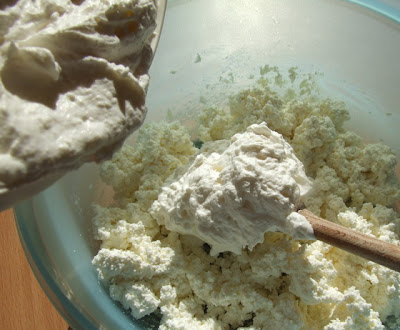 Se omogenizeaza apoi inauntru branza de vaci:
