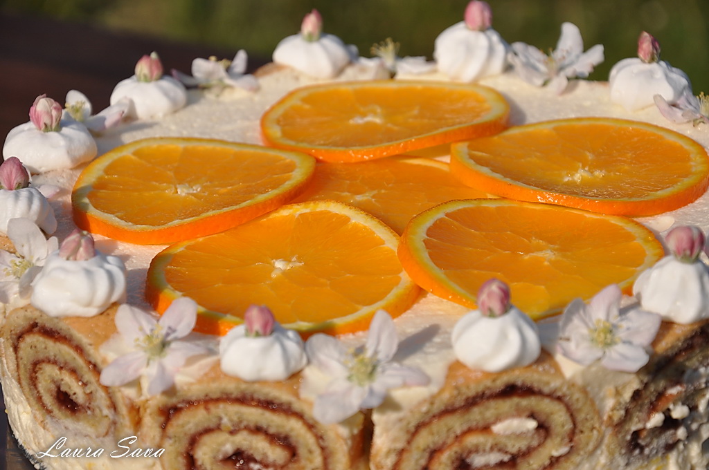 Tort rulada cu crema de iaurt si portocale: un tort vesel si colorat, in ton cu sarbatorile de primavara! 🙂