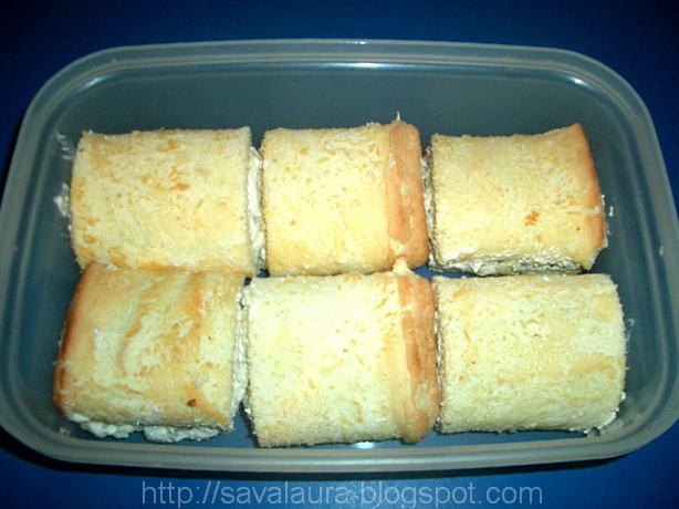 Mini-ruladele, pline cu crema, se lasa la frigider pentru minim 2 ore: