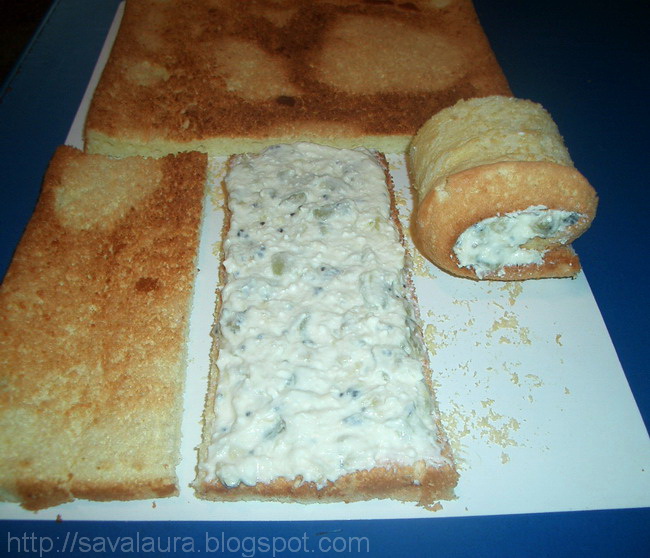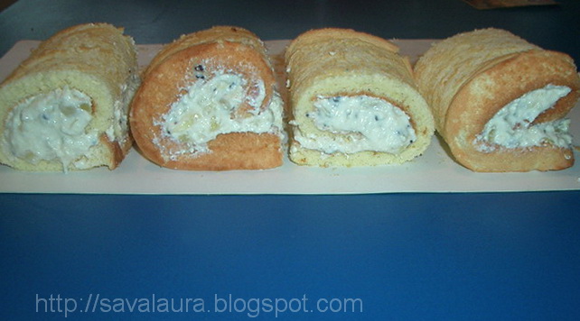 Nu va necajiti daca crema iese din rulada, indesati-o inapoi cu lama unui cutit sau cu dosul unei linguri 🙂