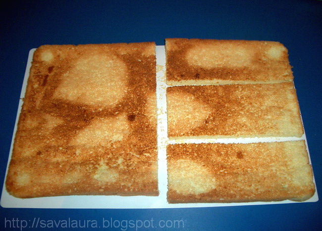 Taiati blatul in doua, si apoi fiecare jumatate in 3 bucati: